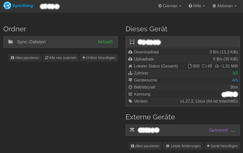 Mit der Zeit werden die Geräte im Haus immer mehr und man möchte auf allen Geräten den gleichen Datenstand haben, für z.B. Kalender, Kontakte, Notizen, Musik usw.. Eine Möglichkeit hierfür ist Syncthing. Hiermit synchronisiere ich meine Daten zwischen Handy und dem Rechner.